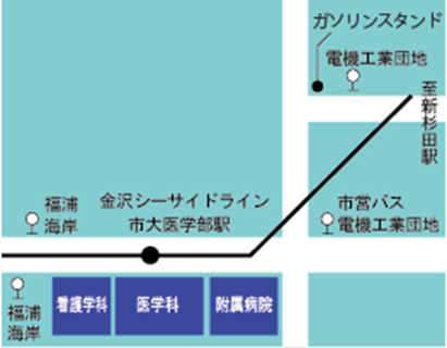 横浜シーサイドライン「市大医学部」が最寄り駅です。下車徒歩1分で大学敷地内です。
